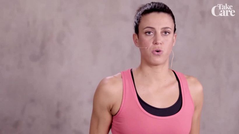 In questo ultimo allenamento del corso da 8 lezioni per tornare in forma, ci dedichiamo ad un allenamento a circuito (Circuit Training) composto da diverse “stazioni”, ognuna delle quali prevede un esercizio specifico. Per cominciare, bastano un tappetino e due manubri da 2 o 3 chili.