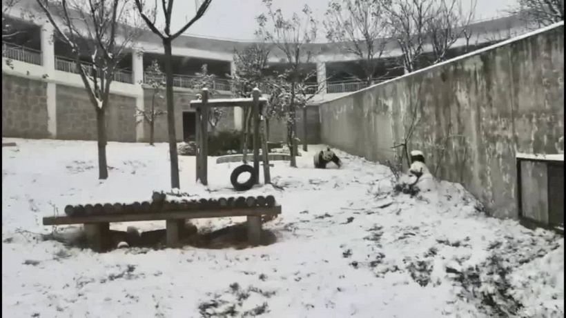 Cina: Shaanxi, panda gigante si diverte tra la neve