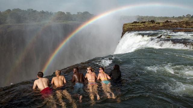 L’africa non è solo safari nella savana: per chi è in cerca di un’esperienza mozzafiato anche senza leoni e gazzelle, la meta ideale è Livingstone Island, in Zambia, dove ci si può tuffare nella stupenda devil’s pool, la piscina del diavolo. Dal 1992, la parte delle spettacolari altissime cascate victoria che ricade nel territorio dello stato dell’africa centro meridionale, è diventata area protetta e c’è un’unica agenzia autorizzata a condurre un massimo di 24 turisti per volta a nuotare in sicurezza nella devil’s pool. Se il livello del fiume è troppo alto, l’isola scoperta da David Livingstone nel 1855 viene chiusa e non è possibile arrivarci. Anche quando l’acqua scende, però, generalmente dalla fine di giugno all’inizio di marzo, può capitare che si possa effettuare solo il tour, ma non nuotare e immergersi nella piscina del diavolo e in quella dell’angelo. Attenzione! Essendo il devil swim facoltativo, il prezzo del Livingstone tour rimane uguale, quindi conviene scegliere il momento migliore dell’anno per poter vivere questa esperienza unica nella sua interezza. Per nuotare in totale sicurezza in entrambe le piscine, meglio programmare le vacanze da fine agosto a inizio gennaio. Le escursioni prevedono un giro in barca nella corrente dello zambesi, attraverso suggestivi canali rocciosi, fino ad arrivare alla colonna di spruzzi delle Victoria Falls. Arrivati alla piattaforma di Livingstone Island, dopo un gradevole spuntino, sarete condotti fino al margine estremo delle cascate, dove vi attendono i più intensi arcobaleni che abbiate mai visto. Attaccandovi ad una corda di sicurezza, potrete poi nuotare nella piscina del diavolo, bacino naturale protetto da una barriera rocciosa che vi impedirà di essere trascinati oltre il bordo, fin dentro le cascate, alte ben 103 metri. D’obbligo farsi scattare foto e realizzare filmati per poter rievocare per sempre un viaggio che non potrete mai dimenticare!