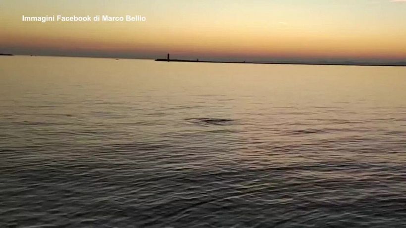 Il video dell’avvistamento è stato pubblicato nel gruppo Facebook “Pesca in laguna e mare”, al tramonto, nei pressi della Bocca di Porto del Lido.