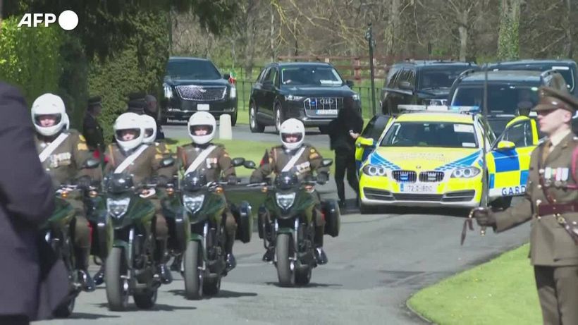 L’arrivo alla residenza ufficiale Aras an Uachtarai per la seconda tappa della visita