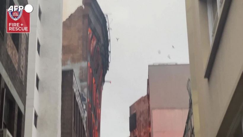 Edificio avvolto dalle fiamme a Sydney, crolla una parete