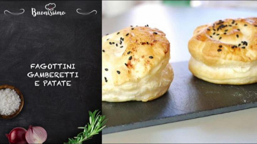 ISTRUZIONI: Affetta i gamberi e le patate lessate in precedenza. Unisci in una ciotola con sale pepe e un filo d’olio. Aiutandoti con un coppa pasta fai dei cerchi nella pasta sfoglia. Metti un po’ di ripeto su uno dei cerchi e chiudi con un altro cerchio. Sigilla i fagottini con i rebbi di una forchetta. Spennella con poco latte e aggiungo una spolverata di sesamo nero. INGREDIENTI: 1 rotolo di pasta sfoglia 2 patate grandi 100 grammi si gamberetti olio evo Sesamo nero sale e pepe