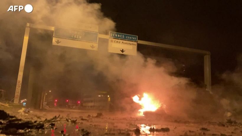 Nella notte falo’ e detriti su una via presso un’area commerciale di Rennes, danni ai negozi