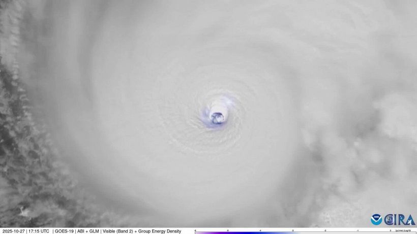 I ricercatori del CIRA (Cooperitive Institute for Research in the Atmosphere Cooperative Institute for Research in the Atmosphere) hanno pubblicato uno spettacolare video dell’occhio dell’uragano Melissa che si sta muovendo nei cieli dell’Atlantico, video nel quale si può vedere un continuo susseguirsi di fulmini al centro del ciclone.