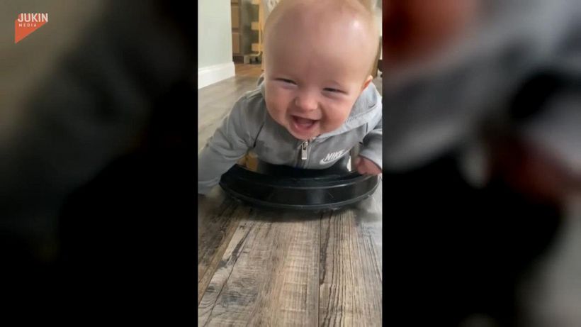 Pulire non è stato mai così divertente! Questo bellissimo bimbo è stato messo dalla mamma sul Roomba, il robot aspiravolvere che va in ogni angolo della casa. Al bimbo piace “guidarlo” mentre l’aspirapolvere gira e pulisce il pavimento. Il bambino ride per tutto il tempo, divertendosi tantissimo con lamamma e il suo nuovo compagno di giochi.
