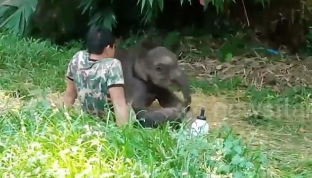 Questo è il momento che scalda il cuore di una elefantina orfana che si addormenta sul grembo di questo ragazzo dopo essere stata rilasciato in natura e respinta dal suo stesso gregge. Il jumbo di due anni, di nome Chabakeaw, è stata trovata intrappolata da sola nel fango a Bueng Kan, nel nord-est della Thailandia. Dopo cinque mesi di allevamento e cura, il Dipartimento ha deciso di riportare la cucciola nella sua mandria naturale. Tuttavia, poco dopo gli ufficiali hanno scoperto che era stata nuovamente abbandonato, a circa un miglio di distanza dal punto di rilascio, e quindi è stata nuovamente salvata. Il filmato mostra l’incantevole momento in cui Chabakeaw si rannicchia sul grembo del suo “papà” per un pisolino, sicura nella fiducia e nel comfort del suo soccorritore. Pichet Noonto, specialista in elefanti della Commissione di Sopravvivenza della Specie IUCN, ha spiegato che il problema con Chabakeaw è che ora non riesce a integrarsi con il gregge. “Crediamo che non sia stata accettata dal leader della mandria, il che è una conseguenza della sua crescita da parte degli umani per oltre cinque mesi. Avrebbe avuto difficoltà ad adattarsi al comportamento degli elefanti in natura e sarebbe stata cacciata via” ha detto. “Ci prenderemo cura di lei mentre pianifichiamo il suo futuro, ma rimandarla di nuovo nella mandria potrebbe non essere una delle opzioni”.