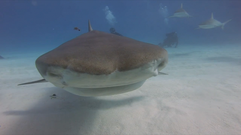 Il pauroso morso di uno squalo visto da una prospettiva assolutamente agghiacciante. Arrivano da Tiger Beach. nella Bahamas, le immagini di una serie di morsi di uno squalo ad una microcamera Go Pro sui fondali marini.