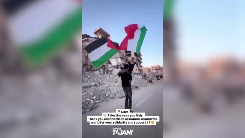 Lo scrive il ministro degli Esteri Antonio Tajani su X postando un video che mostra un ragazzo in rollerblade tra le macerie con in braccio un bambino che sventola le bandiere palestinese e italiana.