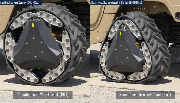 DARPA, un’agenzia militare americana per la creazione di moderni sistemi di difesa, in collaborazione con il il National Robotics Engineering Center della Carnegie Mellon University, ha creato una nuova tipologia di ruota per veicoli militari. La tecnologia alla base di questa invenzione si chiama RWT, acronimo per Reconfigurable Wheel Track ed è in grado di trasformare una ruota in una sorta di cingolato triangolare in soli due secondi, per permettere una maggiore guidabilità anche su terreni particola