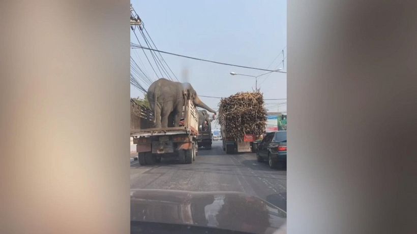 Questo momento è davvero esilarante. Due elefanti si sono aiutati a raccogliere fasci di canna da zucchero da un camion mentre aspettavano nel traffico.