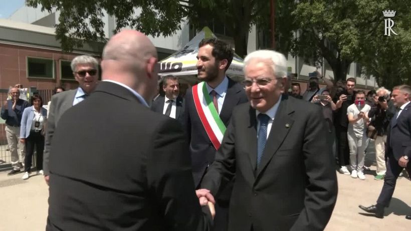 Mattarella a Cesena, volontari gli donano il gilet con la scritta "tin bota"