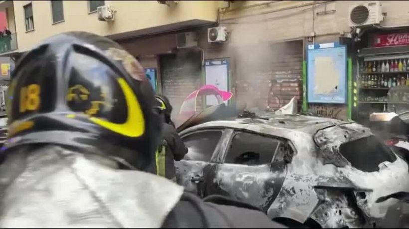 Dopo gli scontri tra ultras di Napoli e Eintracht Francoforte nel centro del capoluogo partenopeo rimangono i segni della devastazione: vetri rotti, auto incendiate, cassonetti rovesciati e pali divelti. Un’auto della polizia è stata data alle fiamme in Piazza del Gesù dove si erano radunati i tifosi. La polizia non è riuscita ad evitare il contatto tra le due tifoserie.