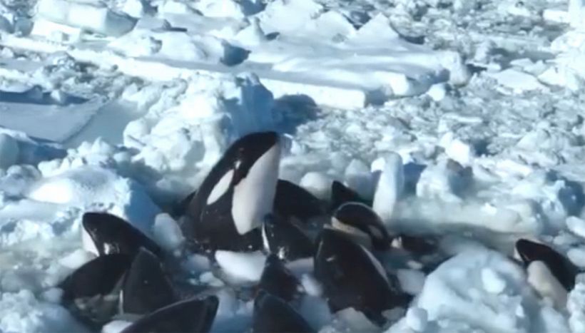 L’operatore che ha pubblicato il video sulla pagina dell’associazione ha sottolineato di aver visto 13 orche con le teste che uscivano da un buco nel ghiaccio. “Sembrava che avessero difficoltà a respirare e c’erano almeno tre o quattro piccoli”.