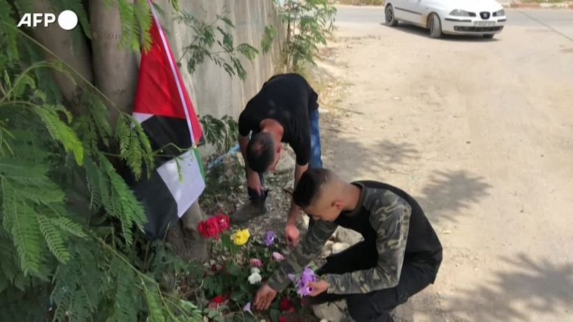 Palestinesi portano fiori nel luogo in cui e' stata uccisa la giornalista di Al Jazeera