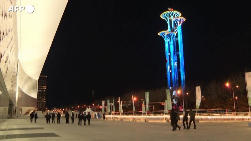 Le immagini della Torre olimpica di Pechino, illuminata per l’inizio dei Giochi invernali. La cerimonia di apertura venerdi’ 4 febbraio.