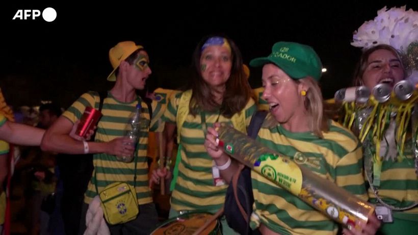 I tifosi brasiliani cantano e ballano nella metropolitana di Doha, fino allo stadio 974, in vista della partita degli ottavi di finale contro la Corea del Sud.