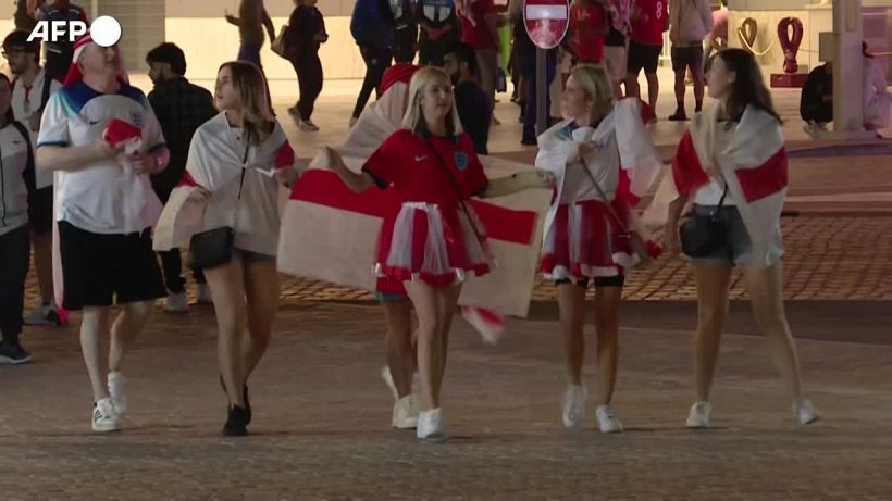 I sostenitori della Nazionale dei Tre Leoni lasciano esultanti lo stadio al Khalifa, a Doha
