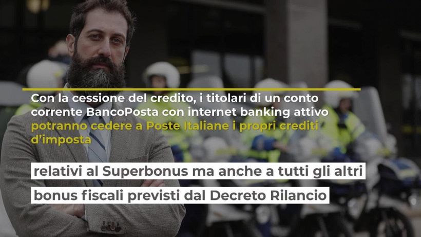 Nell’ambito delle misure previste dal Decreto Rilancio, anche Poste Italiane si sta organizzando in questo senso per offrire ai titolari di un conto corrente BancoPosta con internet banking attivo la soluzione di cessione dei crediti d’imposta, uniti a specifici prodotti assicurativi