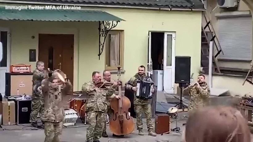 Ucraina, i soldati ucraini suonano musica dal vivo nei teatri di guerra
