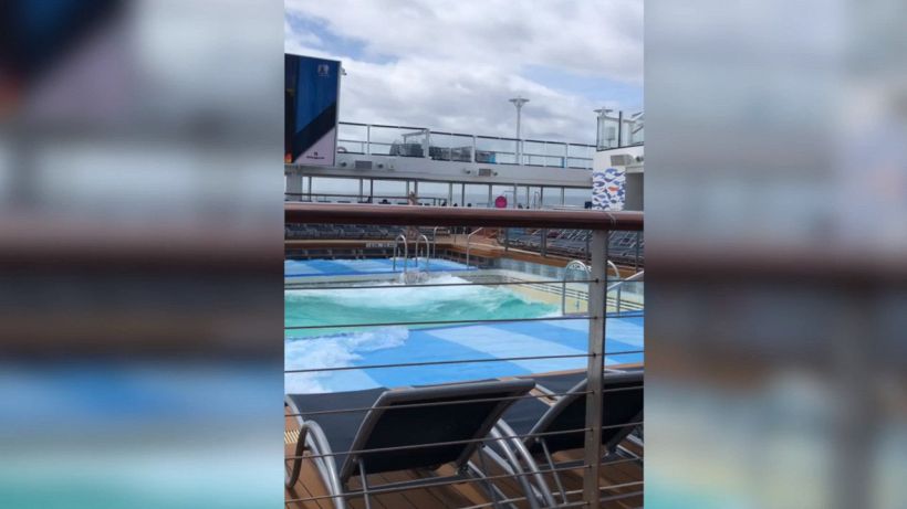 Nel video divenuto virale si vede l’effetto del maltempo a bordo di una nave in crociera in Nuova Zelanda. Un passeggero a bordo ha ripreso le incredibili onde che per effetto del mare mosso ci creano in piscina. Il testimone oculare e autore del video racconta di “averlo filmato durante la sua crociera, ma che a causa del brutto tempo la piscina era diventata troppo agitata per poterci nuotare dentro”. Il fatto risale al 2020 quando l’intero Paese venne colpito da un’ondata di forte maltempo, con grosse inondazioni e migliaia di persone evacuate.