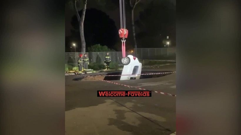 Il primo passo è stata la messa in sicurezza dell’auto rimasta in bilico sul ciglio della voragine. I pompieri hanno poi proceduto ad estrarre le due auto che erano state completamente inghiottite dalla strada.
